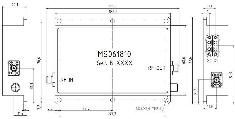 Усилитель MS061810 предназначен для усиления и управления амплитудой непрерывных, импульсных и модулированных сигналов в диапазонах частот от 6 до 18 ГГц. Прибор построен на основе современной GaAs и GaN технологии, обеспечивает высокое и равномерное усиление в широкой полосе частот, широкий динамический и температурный диапазоны, высокую выходную мощность. Исключительные технические параметры и высокая надежность обеспечены использованием современной тонкопленочной ГИС технологии, высоконадежными комплектующими ведущих мировых производителей, герметичной конструкцией. Прибор предназначен для различных промышленных применений: измерительная техника, системы связи и т.д.