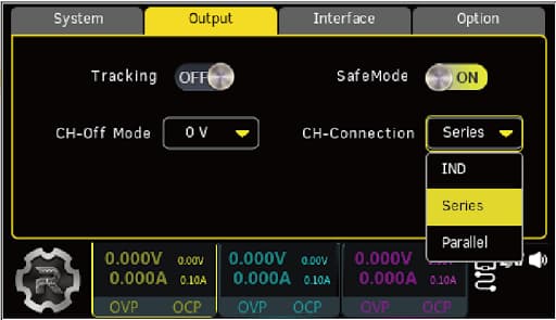 Функция мониторинга выхода позволяет установить пороги напряжения и тока, при превышении которых источник автоматически отключит выход или выдаст сигнал на внешний интерфейс.
