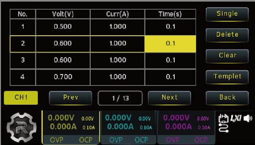 Меню выполнено в интуитивном стиле с минимальным количеством переходов. Основные операции (установка напряжения, включение/отключение выхода) доступны в главном экране.