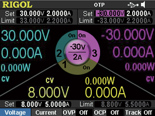- DP831/DP831A — трёхканальный источник (8В/5А, 30В/2А и -30В/2А, мощность 160 Вт)