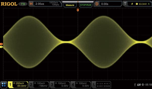 Вертикальное разрешение 8 бит обеспечивает детальную репрезентацию сигналов. Диапазон чувствительности от 1 мВ/дел до 1 В/дел (при входном сопротивлении 50 Ом) позволяет измерять как слабые сигналы, так и сигналы высокого уровня. Встроенные фильтры шумоподавления и выбор полосы пропускания канала способствуют получению чистых измерений.
