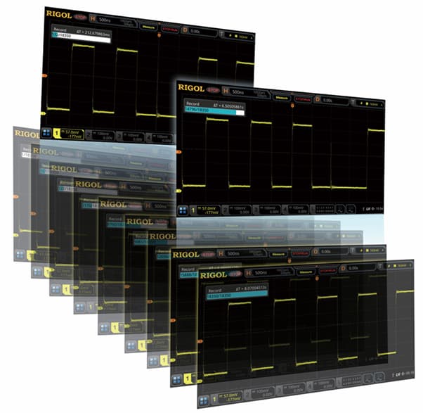 Встроенная функция аппаратной записи и воспроизведения поддерживает сохранение до 450 000 осциллограмм. Это позволяет детально анализировать сложные события, просматривая записанные данные в нормальном режиме просмотра, режиме масштабирования или режиме навигации.
