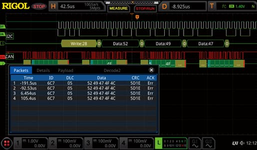 - Анализ последовательных шин данных (RS232, I2C, SPI, CAN, LIN, FlexRay, I2S, MIL-STD-1553)