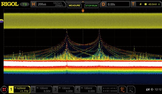 Осциллограф обеспечивает частоту захвата до 600 000 осц/с, что позволяет быстро выявить редкие события и кратковременные сбои в сигналах.